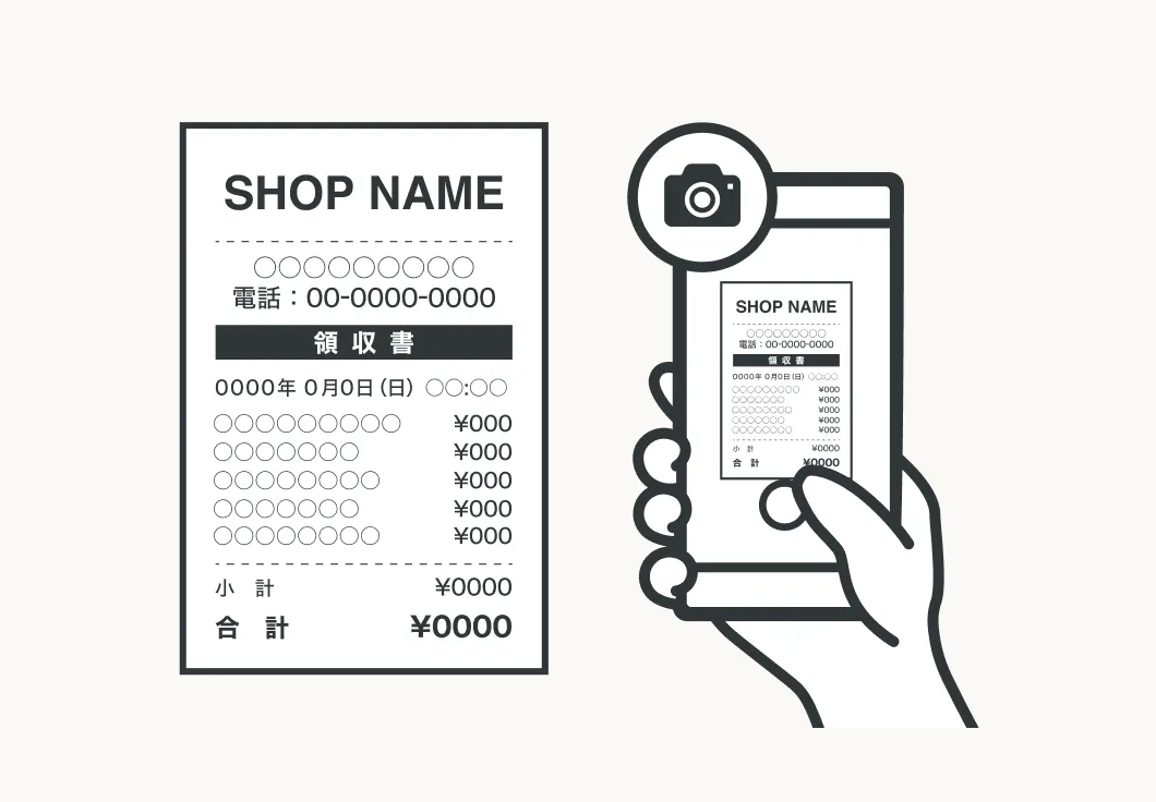 - レシートにクーポン券などが印字されている場合、その部分を隠して撮影してください。